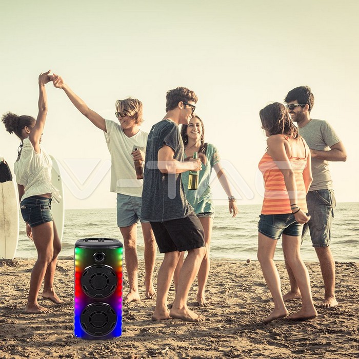 - Altoparlante trolley ricaricabile progettato con doppio woofer da 8 pollici con maniglia