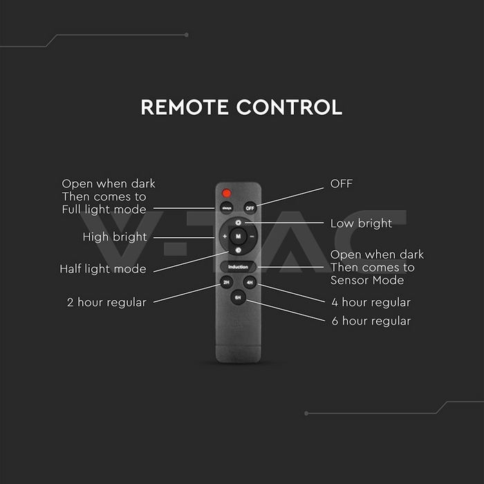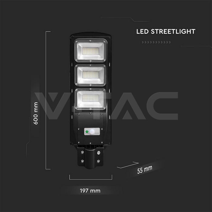 SKU 95534 | Armature Stradali V-tac | 12W Pannello solare Luce Fredda (Colore Nero), Flusso 1200 Lumen