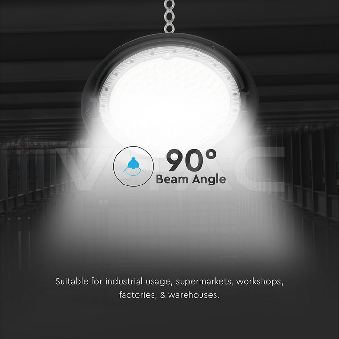 SKU 217813 | Campane Industriali V-tac | 200W Luce Fredda (Colore Nero), Flusso 27000 Lumen