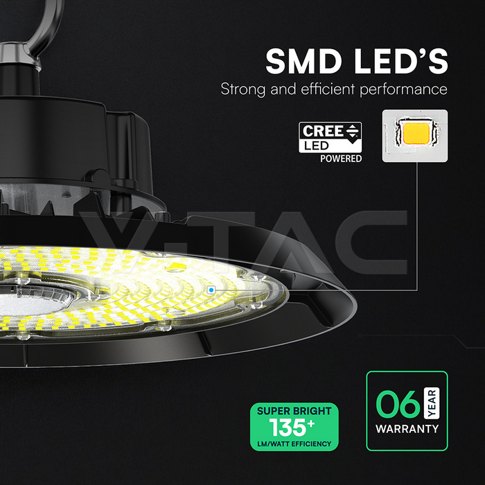SKU 240746 | Campane Industriali V-tac | 100W Luce Fredda (Colore Nero), Flusso 15500 Lumen