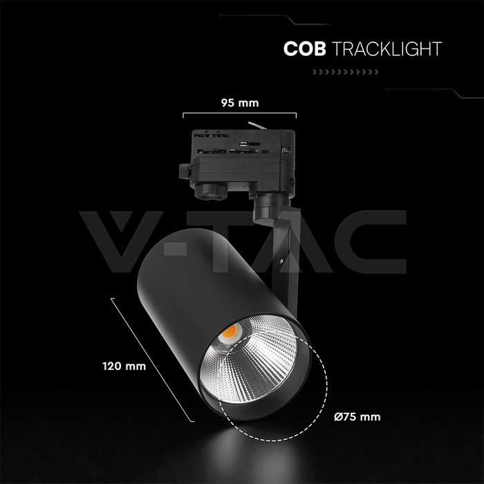 SKU 241546 | Faretti a Binario V-tac | 20W Luce Calda (Colore Nero), Flusso 1620 Lumen