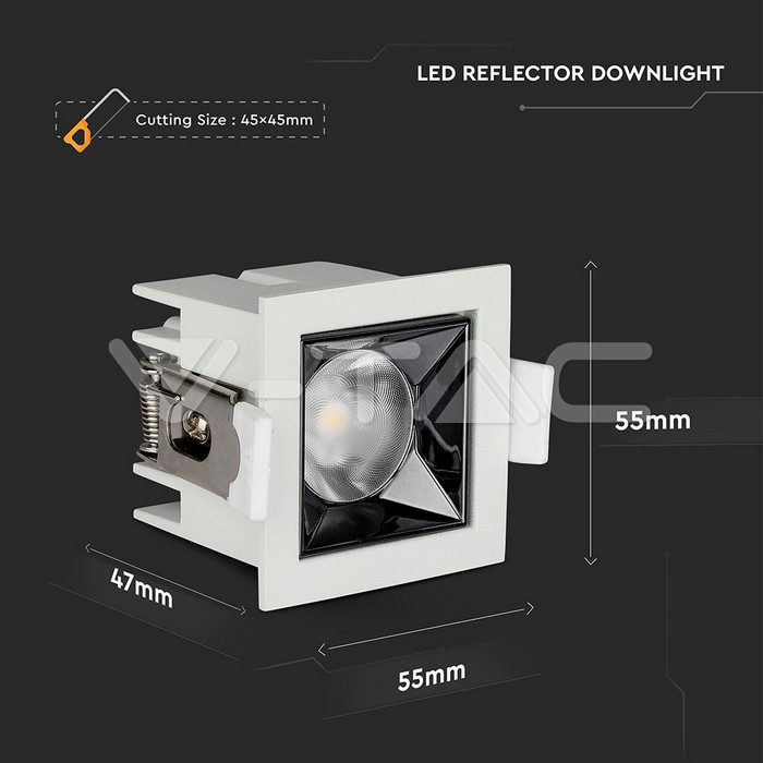 SKU 970 | Faretti da Incasso V-tac | 4W Luce Fredda (Colore Bianco), Flusso 320 Lumen