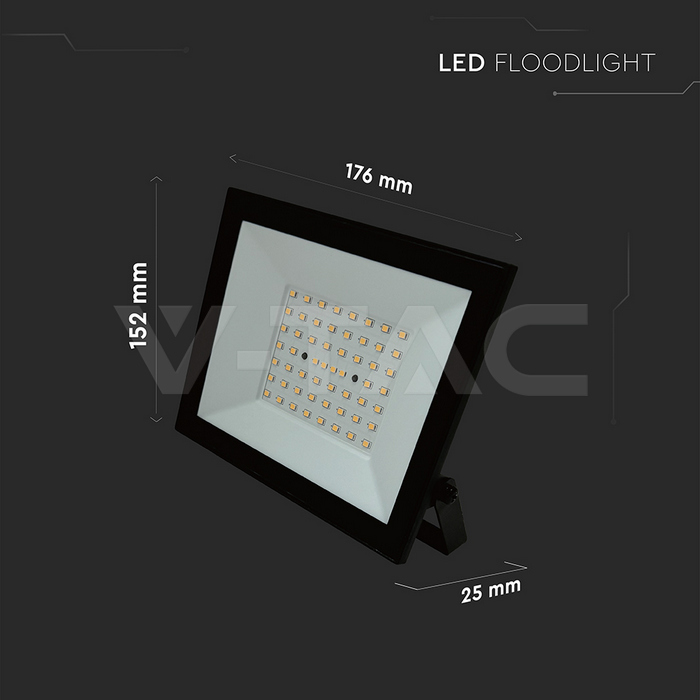 SKU 23988 | Faro LED V-tac | 50W Luce Naturale (Colore Nero), Flusso 4700 Lumen