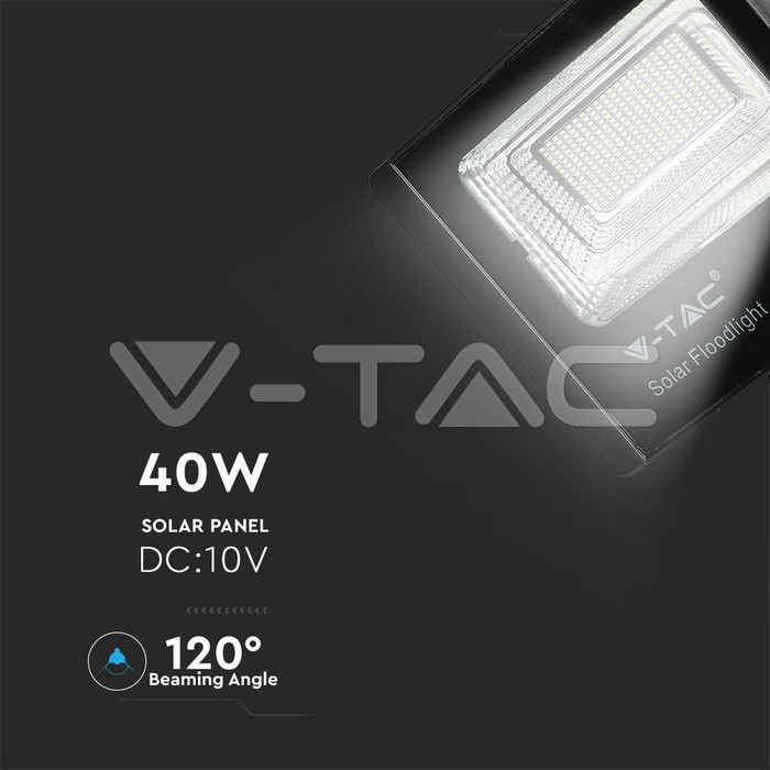 SKU 94026 | LED Energia Solare V-tac | 40W Luce Fredda (Colore Nero), Flusso 3100 Lumen