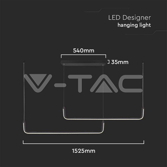 SKU 6941 | Lampadari e Portalampade V-tac | 24W Luce Naturale (Colore Nero), Flusso 2500 Lumen