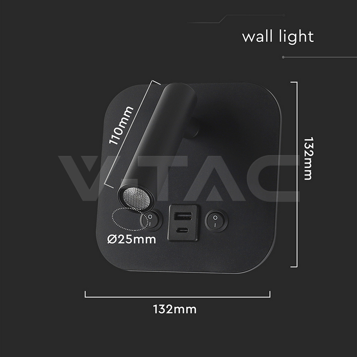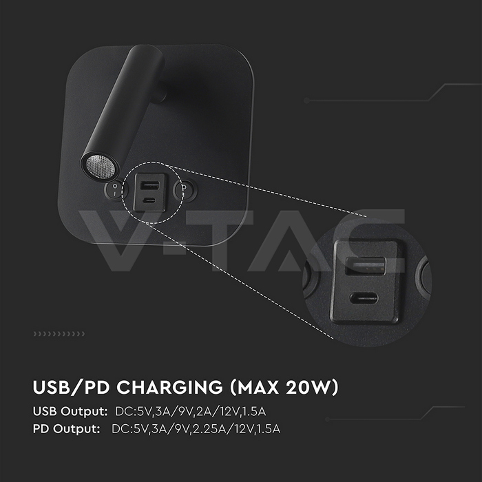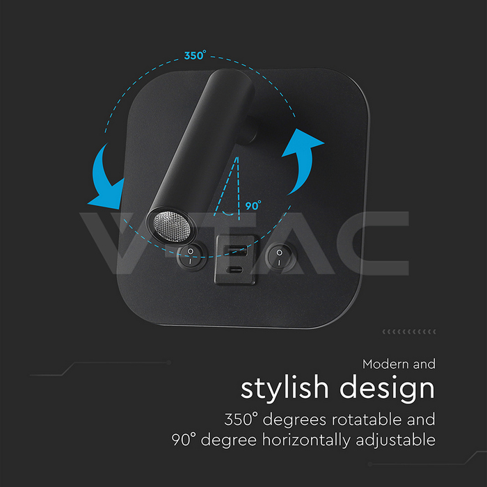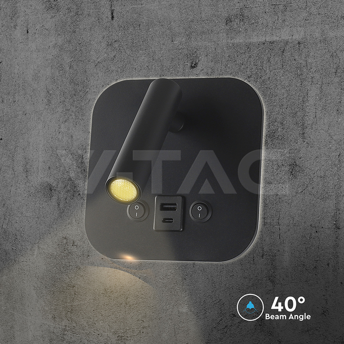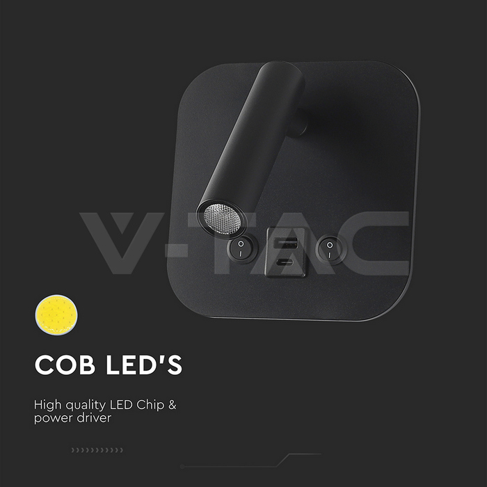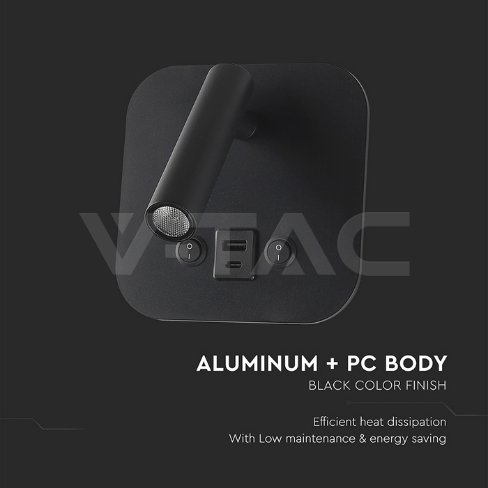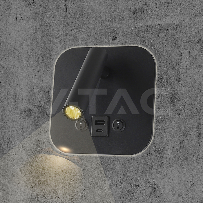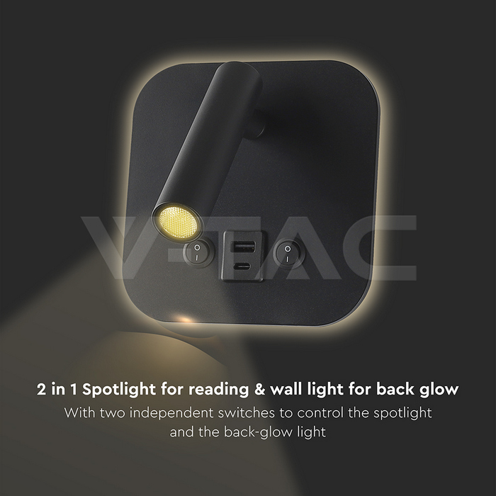SKU 240036 | Lampade da Parete V-tac | 8W Luce Calda (Colore Nero), Flusso 830 Lumen