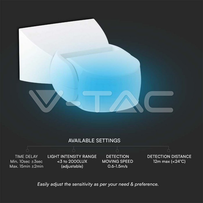 - Raggio di rilevamento:12m Max(<24°C)